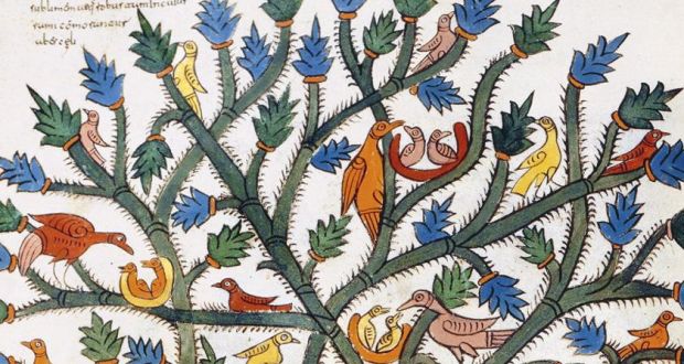 Image: from front cover of Meetings with Remarkable Manuscripts by Christopher de Hamel showing detail from the Morgan Beatus M644, folio 252v © The Morgan Library & Museum/Art Resource, NY/Scala, Florence.