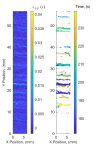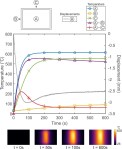 The image shows the normalised out-of-plane displacements as the colour as a function of time in the z-direction for the surface of a panel represented by the xy-plane.