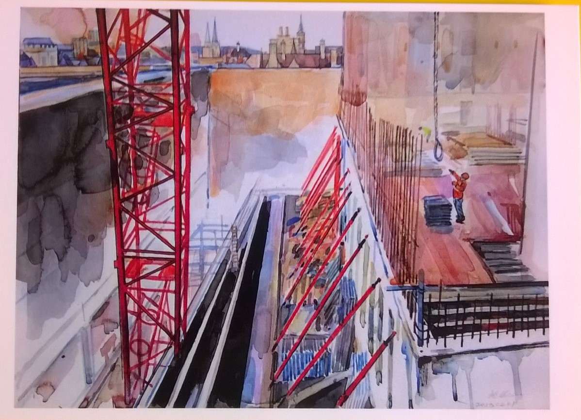 One of my favourite institutions to visit is the Bodleian’s Weston Library in Oxford. I have written before about their rotating exhibition in the Treasury of unique books and manuscripts from their collection [see my post entitled ‘Pope and Austen‘ on September 9th, 2015]. A recent visit did not disappoint and included one of John Le Carré’s manuscripts showing his extensive editing as well as early texts written on birch bark. However, it was in the shop that something really caught my eye. The fusion of art and engineering in a postcard depicting a painting called ‘The red crane’, by artist in residence, Dr Weimen He, capturing the moments in time during the refurbishment of the library. This level of fusion is rare in my experience and perhaps the ethos that created it is one of the reasons the Weston Library is such a pleasure to visit.